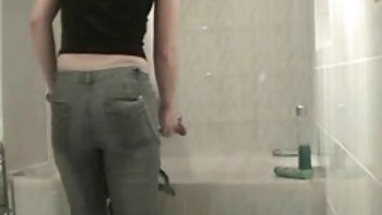 Два сексуальных рогатых лесбиянки облизывают свои костыли в туалете и имеют зрителей