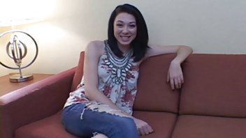 Темная волосатая мастурбирует на диване